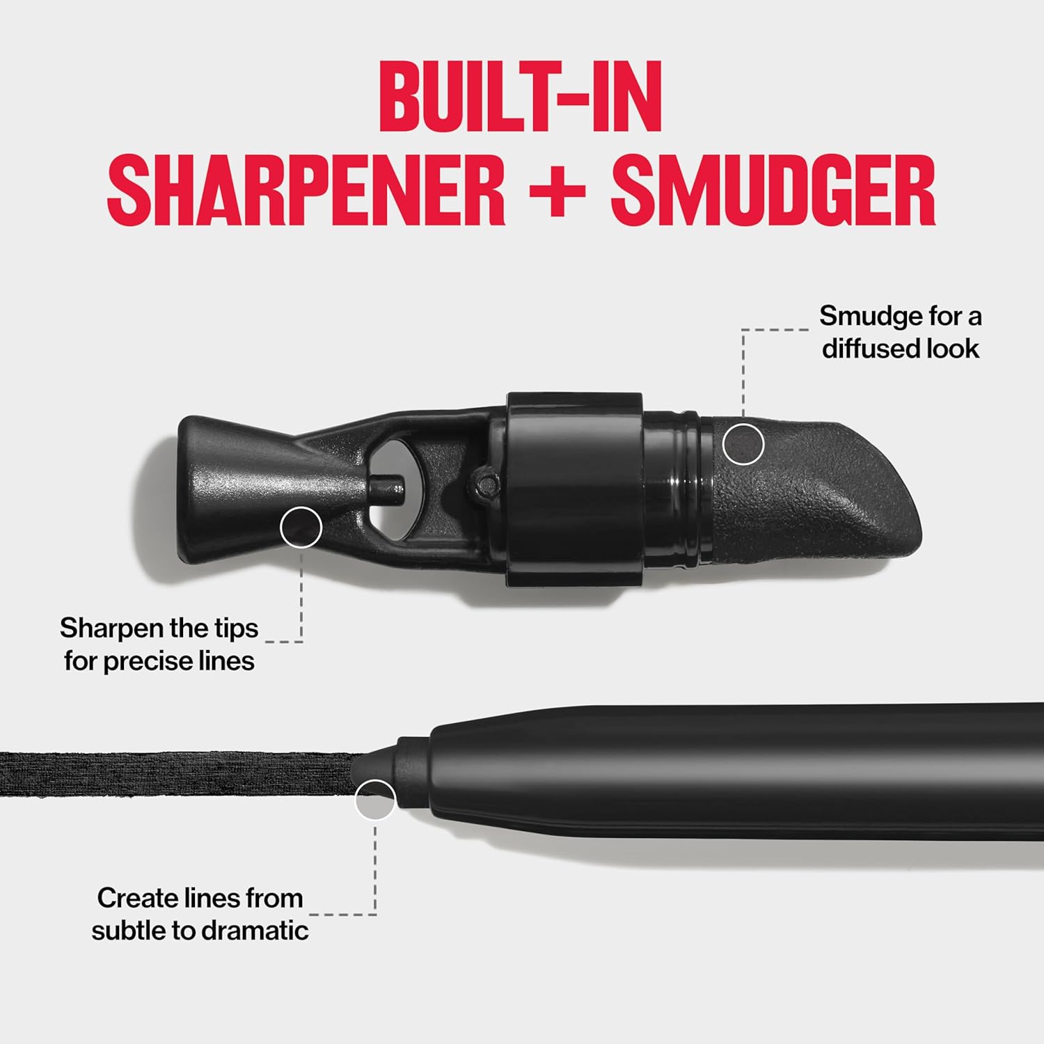 - EASY APPLICATION: Glides on, creating intensely defined lines that can go from subtle to dramatic. Includes built-in sharpener for the perfect pointed tip and a smudger to blend.