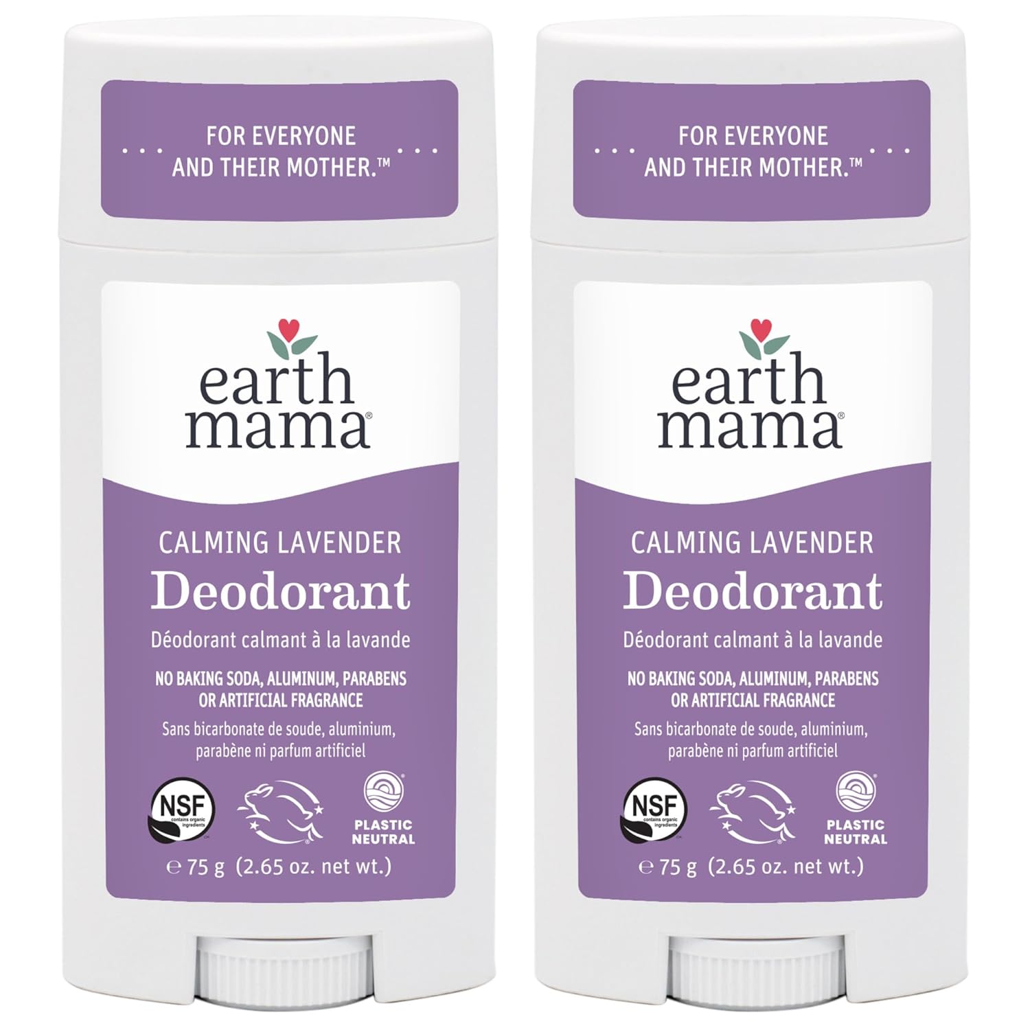 Earth Mama Calming Lavender Deodorant | Safe for Sensitive Skin, Pregnancy and Breastfeeding, Contains Organic Lavender, Calendula and Coconut Oil, No Baking Soda or Aluminum, 2.65-Ounce (2-Pack)