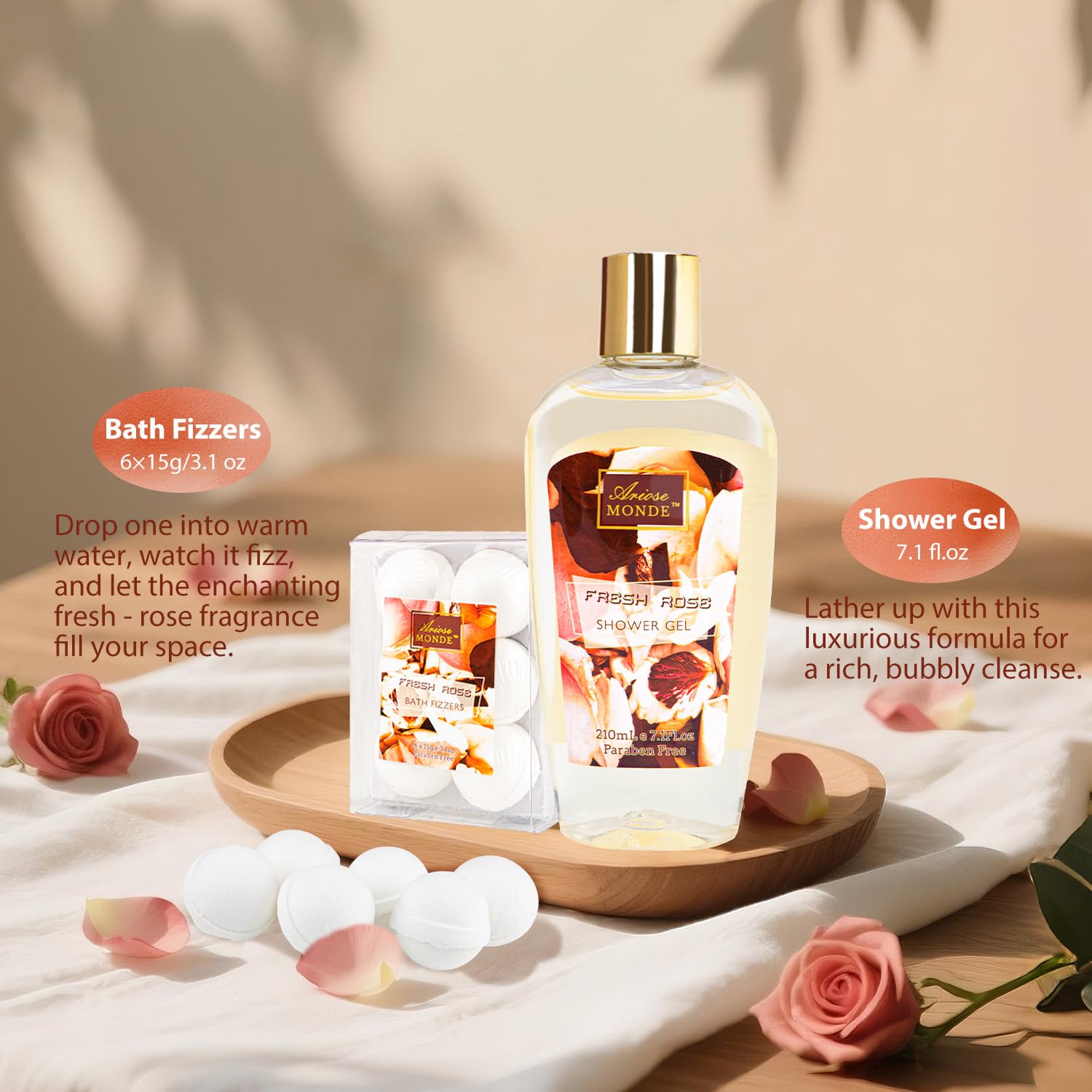- Product Benefits : Provides a luxurious spa experience at home with various soothing and moisturizing body care products in a fresh rose scent, suitable for different skin types Provides a luxurious spa experience at home with various soothing and moisturizing body care products in a fresh rose scent, suitable for different skin types