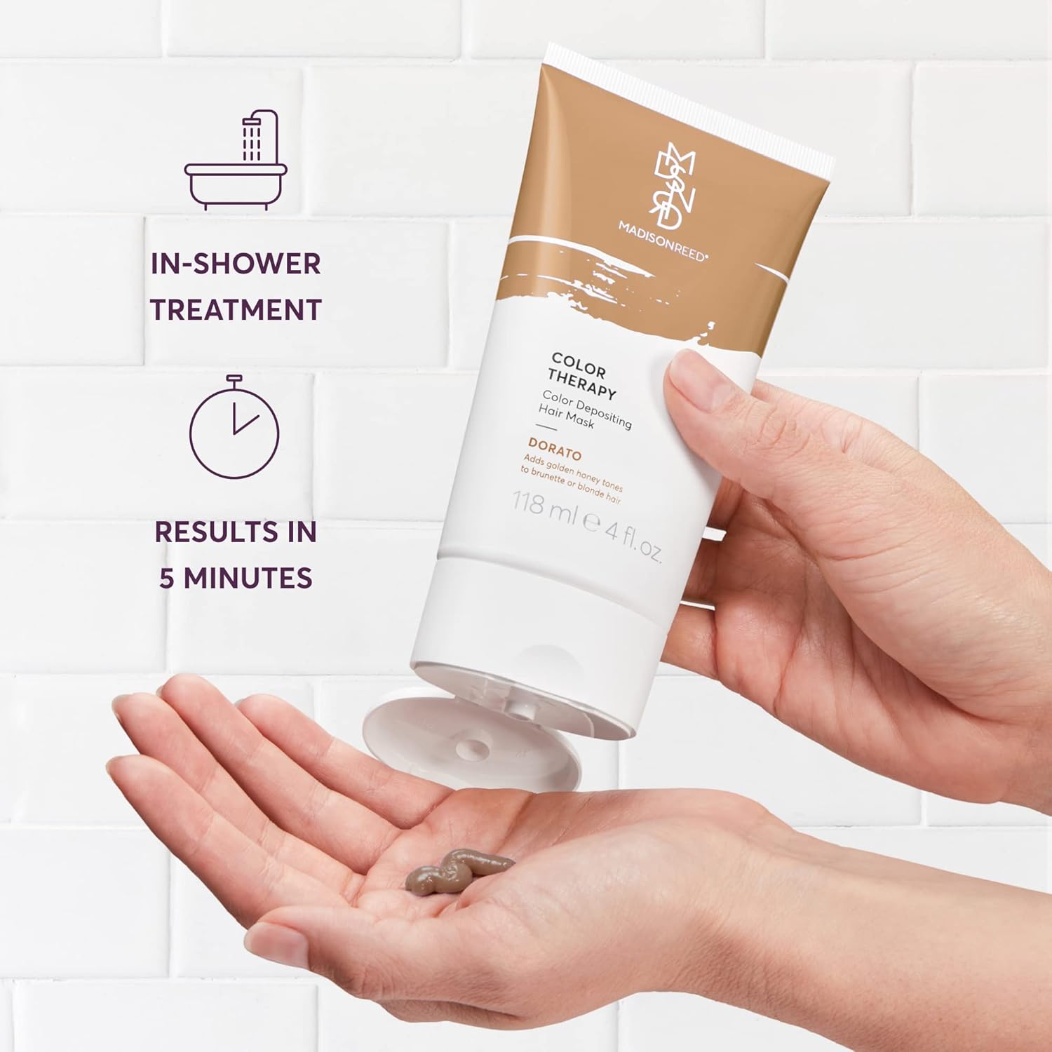 - REFRESH COLOR & TONE: Refresh tone and existing color in 5 minutes, while conditioning your hair with luxurious & effortless Madison Reed Color Therapy Hair Mask. Powered by positively charged SmartDye Technology, this restorative hair treatment deposits temporary color where your hair needs it most, toning & enhancing color while adding intense hydration.