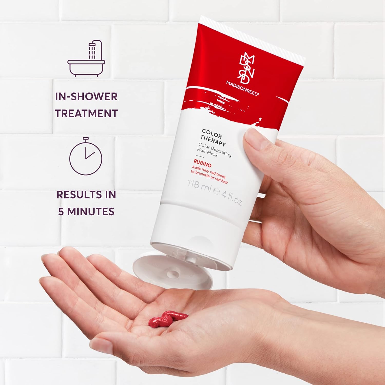- COLOR DEPOSITING HAIR MASK: Madison Reed Color Therapy in Rubino works best on brunette or red hair, and adds ruby red tones to refresh & enhance color. Not intended for gray coverage.