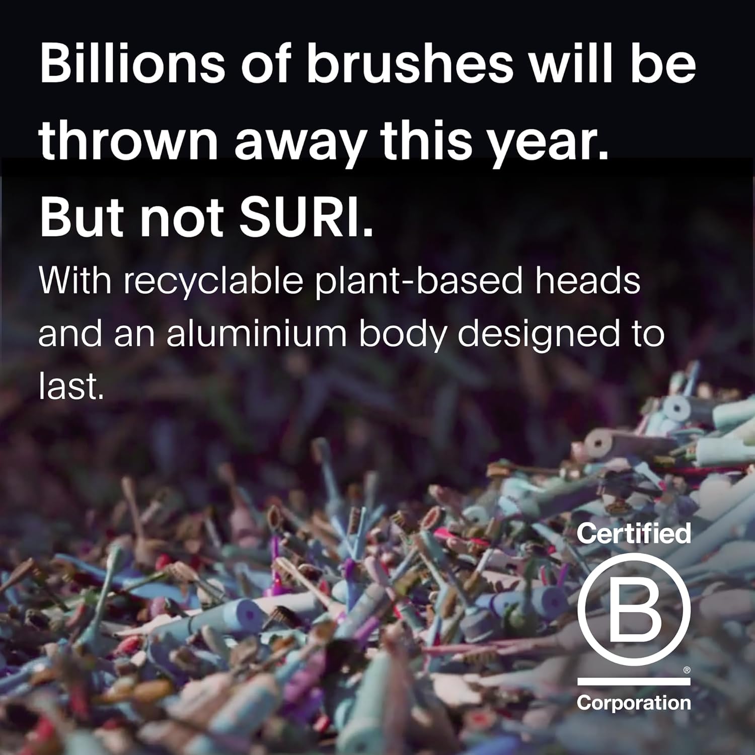 - RECYCLABLE PLANT-BASED HEADS and BRISTLES - SURI's eco-conscious electric toothbrush uses brush heads made of renewable cornstarch, and medium-soft bristles made from castor oil. SURI also offers a simple and FREE recycling service in the US