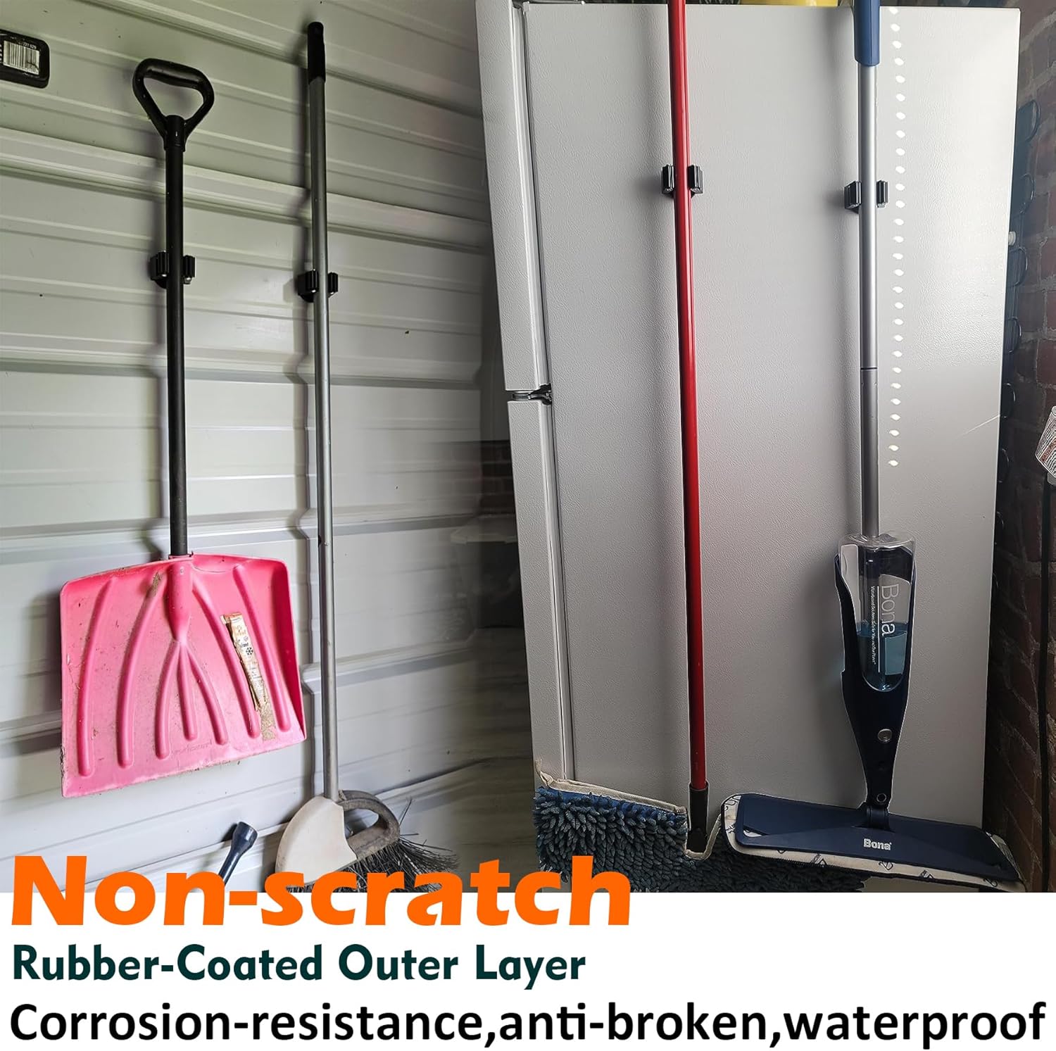 - Non-scratch Broom Holder with Gripper: Anti-rust and anti-scratch, 2PCS magnetic mount heavy-duty magnetic mop holder can stick firmly to any ferrous metal surface and will not damage or scratch tool boxes, tool cabinets, or metal cabinets