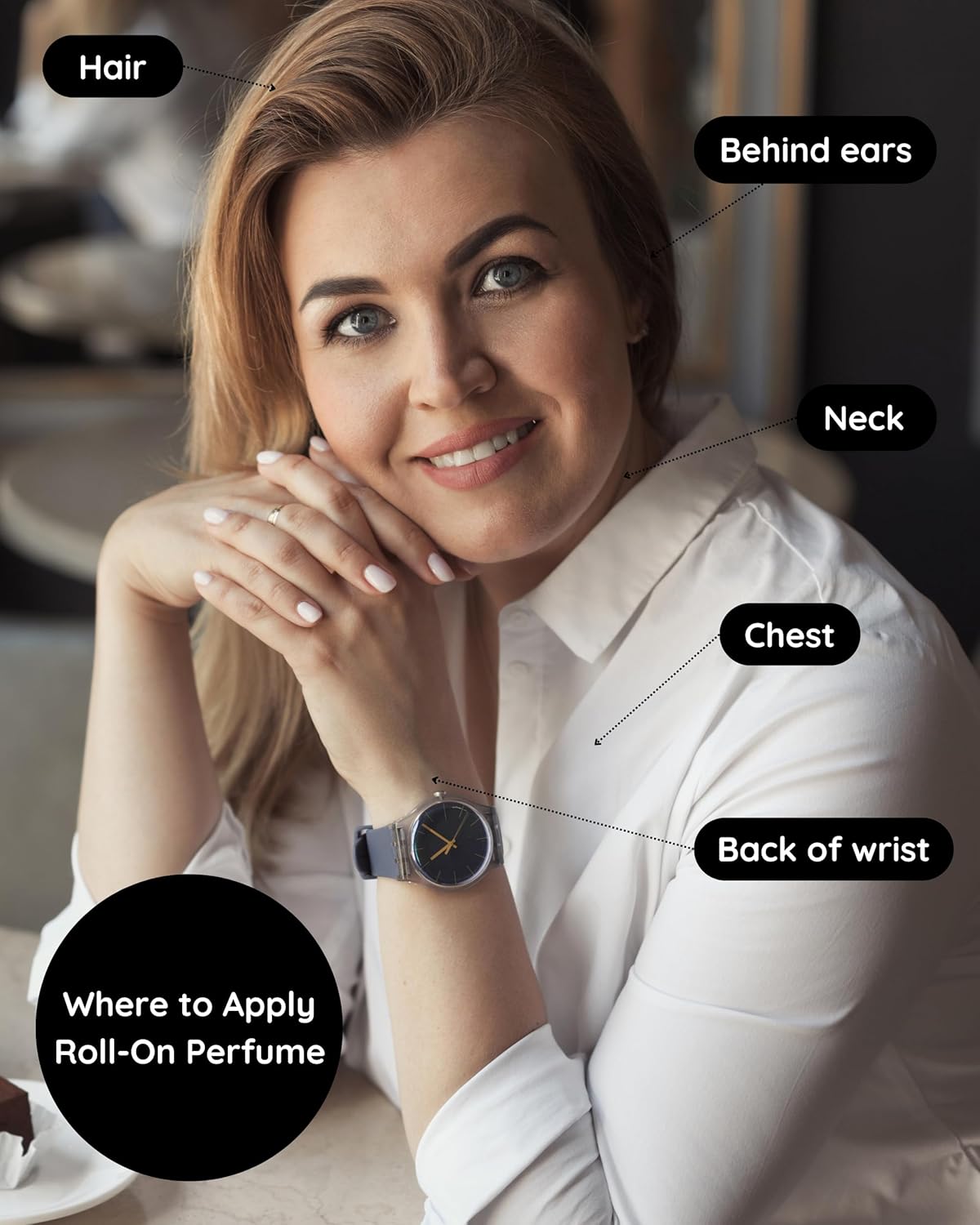 - ON-THE-GO CONVENIENCE - Our roll-ons are thoughtfully crafted with a travel-friendly size, making them perfect companions for your daily adventures. Slip one into your bag or pocket and effortlessly elevate your mood anytime, anywhere. The sleek and compact design ensures mess-free application, while the rollerball glides smoothly over your skin, delivering the perfect amount of scent with each stroke.