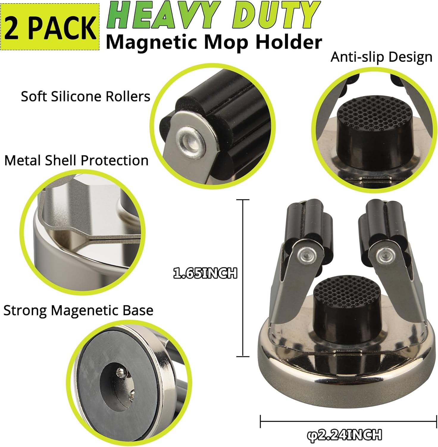 - [Magnetic Mop Broom Holder]: Magnetic mop broom holder with petal shaped rollers. With strong grip and friction to prevent tools from slipping. Keep your cleaning tools organized and within reach. Free up valuable floor space