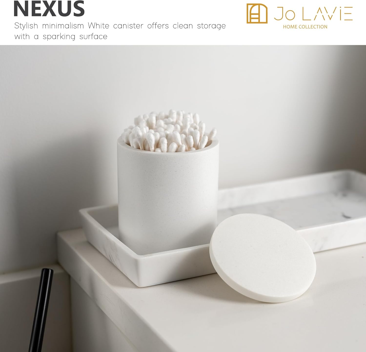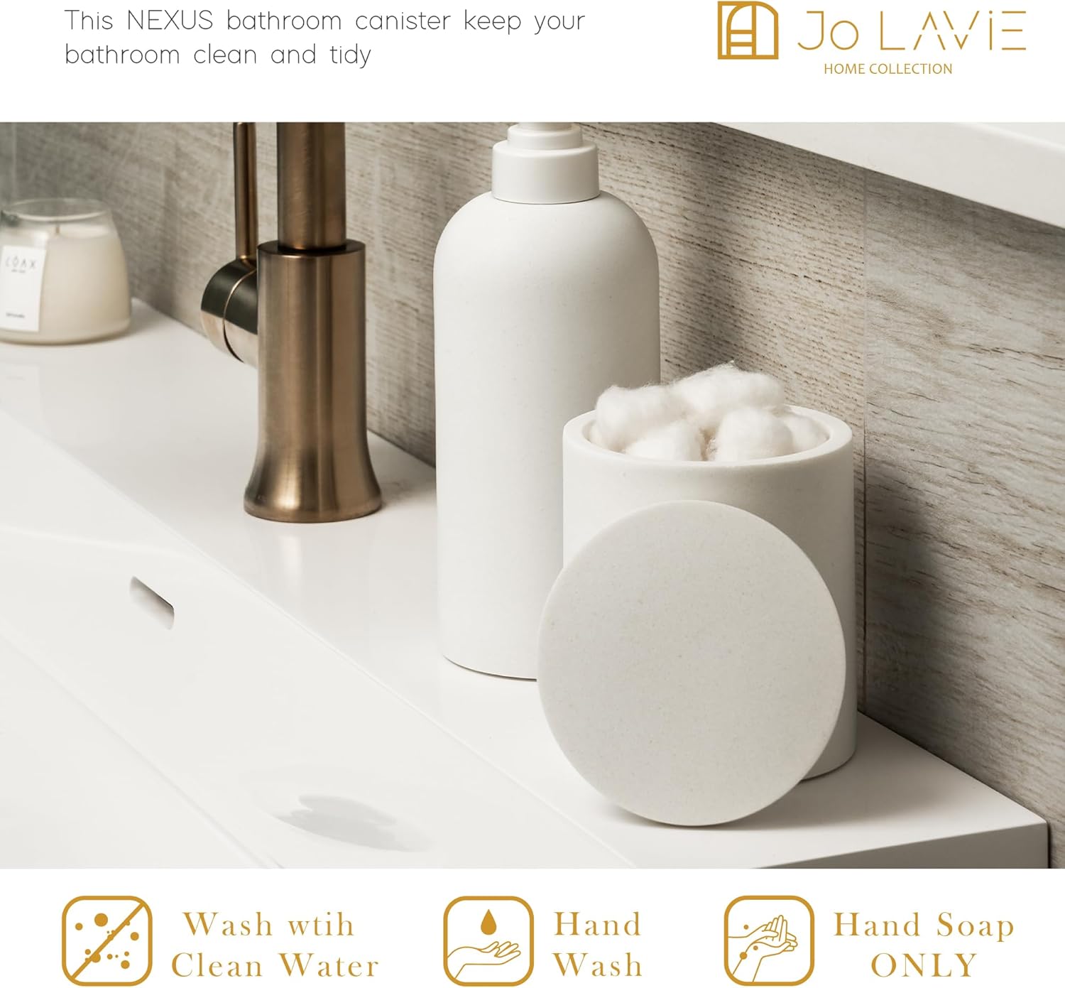 - Versatile and Multipurpose: The Jo Lavie apothecary jars are optimally sized to fit a wide range of personal care items, including cotton swabs, cotton balls, cotton pads, or qtips. The small, compact design will ensure a user-friendly experience, without occupying too much space.