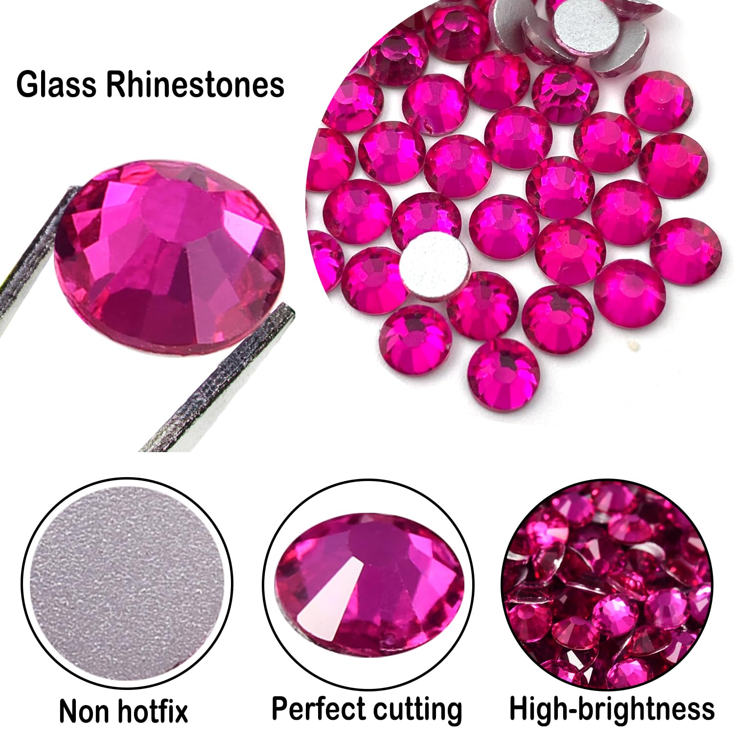 Flatback Glass Rhinestones,Bedazzler Gems 1440pcs Non Hot fix Rhinestones for Nail Charms Crafts Clothes Tumblers,Hot Pink,SS10