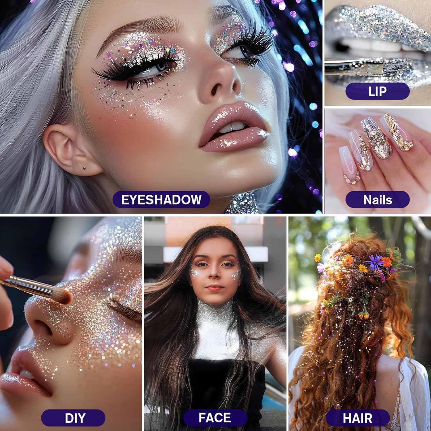 - Ideal Glitter for Beauty : Use as nail glitter powder, body glitter, eye shadow glitter, face glitter, hair glitter, friendly to face and body, create natural shiny makeup safely.